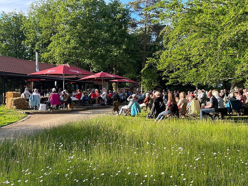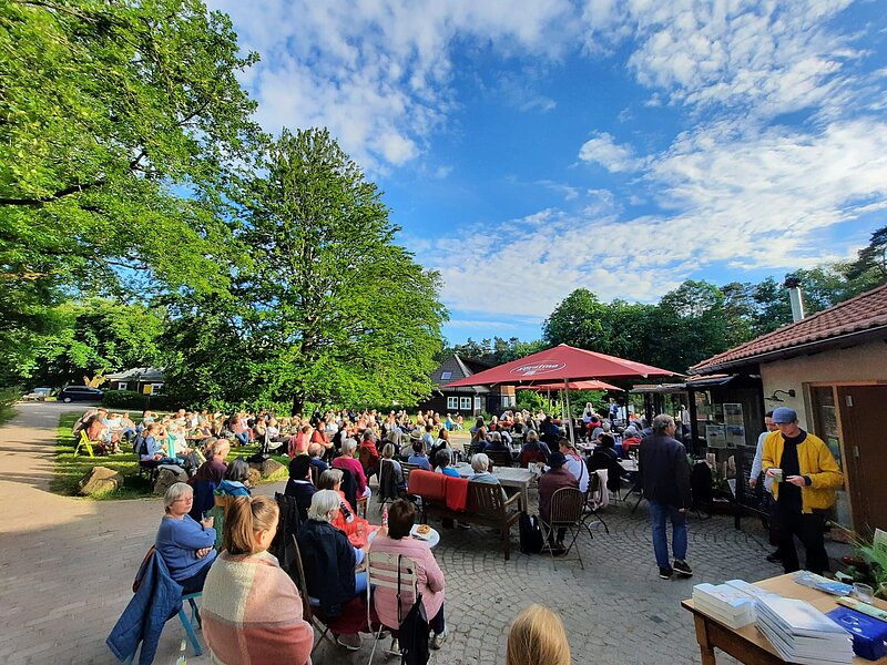 Die Stimmung hätte schöner nicht sein können: Ein lauer Sommerabend, ein Glas guter Wein, leckere Snacks und ca. 160 Menschen, die gespannt den Worten der Autorin lauschten. Im Anschluss gab es Zeit, ein wenig mit Dörte Schipper zu plaudern und sich das Buch signieren zu lassen. Die Loheland-Kenner stellen fest: „Es ist natürlich ein Roman und vieles frei erfunden, dennoch ist die Geschichte sehr nah dran an dem, was hier an diesem wunderbaren Ort gelebt und geschaffen wurde.